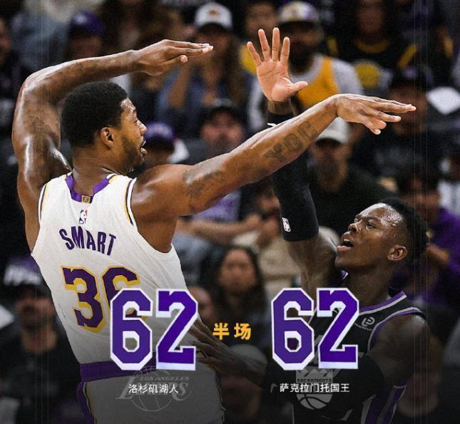 第二节比赛,湖人进攻突然断电。此时,面对旧主的威斯布鲁克站了出来,他既有强势攻筐,又能妙传队友,最可怕的是威少居然三分球,投出3中3的神奇命中率,带领国王轰出一波13比2的进攻高潮,瞬间反超比分。里夫斯用三分和罚球试图为湖人止血,但威少面对旧主爆发,砍下11分5篮板3助攻,正负值+10。半场战罢,湖人62比62战平国王。